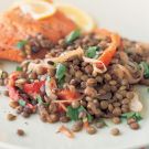 Green French lentils have a nutty, peppery flavor and a firm texture that holds up well to cooking and marinating. This flavorful legume salad makes a delicious accompaniment to broiled salmon with lemon or a simple roast chicken.