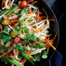 Chopped green onions, cilantro leaves and roasted peanuts for garnish