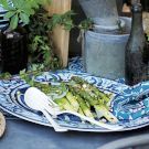 - 2 bunches thick asparagus, tough ends trimmed and stems
