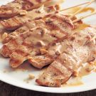 Arrange the skewers on a warmed platter. Pour the sauce over the skewers, or pour it into a small bowl and set alongside for dipping. Sprinkle the skewers with the peanuts, if desired, and serve right away. Makes 20 skewers; serves 4 to 6.