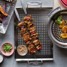 Place the skewers on the griddle, cover the grill and cook until the chicken is cooked through and the vegetables are just tender, about 10 minutes, turning the skewers once or twice during the cooking time. Transfer to a platter, season with salt and pepper to taste, and serve immediately. Serves 4.