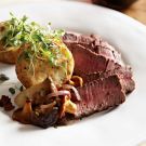 Transfer the filets to a cutting board, cover loosely with aluminum foil and let rest for 10 minutes. Cut the filets into 1/4-inch slices. Spoon the sauce onto individual plates and fan the steak slices on top. Sprinkle with Maldon sea salt and serve immediately with potato caraway cakes. Serves 4.