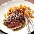 Transfer the steaks to a cutting board and baste with the butter mixture. Cover loosely with foil and let rest for about 10 minutes before slicing or serving. Serve the steaks with the butternut squash and rutabaga hash and the chimichurri alongside. Serves 4.