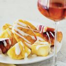 When fruit is grilled, the flesh softens and some of the natural sugars caramelize, creating an added layer of flavor that is reminiscent of the fruit in a deep-dish pie. Here, grilled fruits are combined in a warm salad drizzled with a creamy tart-sweet dressing. Almost any kind of fruit in season can be cubed, sliced, halved and quartered, then grilled. If you can’t find lemon-infused olive oil, add a few drops of fresh lemon juice to 2 Tbs. olive oil.
