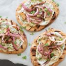 Grilled Naan with Smoky Eggplant Puree and Grilled Red Onions
