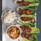 The only way to grill pork belly is to render out some its fat first. Otherwise, the fat drips into the grill and creates an inferno that incinerates the meat. A low, slow braise in the oven gets the job done. Then you can grill the belly and get a good, crisp exterior. In this dish, at the end of cooking, the pork is glazed with ssam jang, a thick Korean spice paste. Wrap pieces of grilled belly in lettuce leaves with sticky rice, kimchi and more spice paste and you have a knockout small plate or first course. You can buy ssam jang in Asian markets, but it’s easy enough to stir some up yourself.