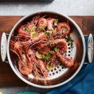 Here, shrimp are cooked with their shells intact, which imparts great flavor. They’re a bit messy to peel before eating, so have plenty of napkins on hand.