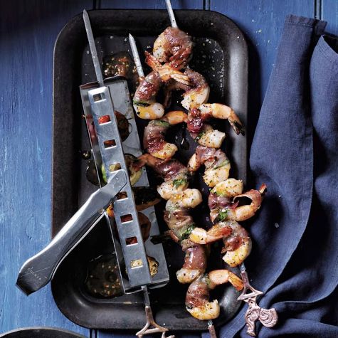 Salty prosciutto dresses up plump jumbo shrimp in this super-simple dish perfect for a summer barbecue.