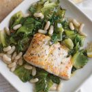 Spoon the escarole and beans onto individual plates and top with the halibut. Drizzle with olive oil and serve immediately with lemon wedges. Serves 6.