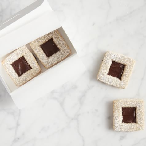 No holiday cookie box is complete without some pretty linzer cookies. In our decadent spin on that much-loved classic, we’ve swapped out the traditional jam for a rich filling of dark chocolate ganache that includes a splash of Frangelico, a hazelnut-infused Italian liqueur that contributes a sweet, nutty flavor. To streamline prep, instead of grinding the hazelnuts yourself, sub in purchased hazelnut flour, available from sources like Bob’s Red Mill. If you want to make your own, simply pulse room-temperature toasted hazelnuts in a food processor until finely ground, taking care to stop the machine as soon as the nuts are ground so that the nuts don’t turn into hazelnut butter.