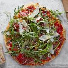 Using the pizza peel, transfer the pizza to a cutting board and top with half of the arugula. Arrange half of the Parmigiano-Reggiano shavings on top. Preheat the pizza maker again, assemble the remaining pizza and bake. Cut the pizzas into slices and serve immediately. Makes two 10-inch (25-cm) pizzas.