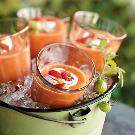 The chilled soup known as gazpacho tastes refreshing on a warm afternoon. Our version is particularly flavorful, as it incorporates garden-fresh heirloom tomatoes.