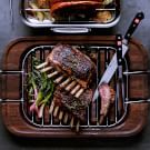 Coated with a simple mixture of garlic and herbs, rack of lamb makes a dramatic presentation, especially when cut into double chops for serving. Serve alongside simply roasted seasonal vegetables and you're prepared for a festive dinner party with minimal effort.