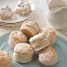Turn out the dough onto a floured surface. Knead just until the dough comes together, about 10 strokes. Using floured hands, pat into a circle about 1 inch (2.5 cm) thick. Using a 2-inch (5-cm) biscuit cutter dipped in flour, cut out as many rounds of the dough as possible. Gather up the scraps, knead briefly and continue patting and cutting out to make 6 to 8 biscuits. Place on the rimmed baking sheet without touching. Bake until golden brown, 15 to 17 minutes. Let cool on the baking sheet for 3 minutes. Serve the biscuits on individual plates, topped with the warm gravy. Serves 4 to 6.
