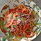 Homemade pasta is a snap to prepare with the help of the Vianté machine, which kneads the dough and also extrudes it into your desired shape. When placing the extruded pasta on the floured baking sheet, dust the strands themselves with flour as well to prevent them from sticking together. Lightly shake off the excess flour before cooking the pasta in the boiling water. Then toss the pasta with our ready-to-use sauce and dinner is served.
