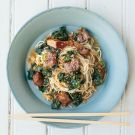 Though easy to assemble, this simple braise has a complex combination of sweet, salty, bitter and spicy flavors. If you like lots of greens, you can add a second bunch of Tuscan kale (also known as lacinato or dino kale), but you will need to stir it three or four times as it cooks. Serve over soba or other Asian noodles and top with a sprinkle of toasted sesame seeds.
