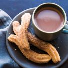 Thick, rich hot chocolate, with a texture somewhere between a drink and a sauce, accompanies these crisp deep-fried churros dusted with cinnamon-sugar. Make sure to serve the churros piping hot, and dip them deeply into the molten chocolate.