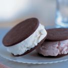 Place half of the cookies, bottom side up, on a work surface. Place a scoop of the ice cream on each cookie. Top with the remaining cookies, bottom side down, and gently press each sandwich together to flatten the ice cream evenly.