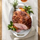 - 1 bone-in smoked ham, 16 to 18 lb. (8 to 9 kg) (not spiral-cut), such as Nodine’s Woodland whole bone-in ham