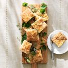 Notes: Defrost the puff pastry overnight in the refrigerator. Be sure it’s still cold when you bake it. To toast pignolis, place in a dry sauté pan over low heat for 5 to 10 minutes, until lightly browned. This can be assembled a day in advance, refrigerated and baked before serving.