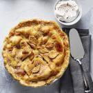 Place the pie on a sheet pan and bake for 1 to 1 1/4 hours, or until the crust is browned and the juices begin to bubble out. Serve warm. Makes one 10-inch (25 cm) pie.