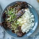 Korean-style short ribs, also known as flanken-style ribs, are cut across the bone rather than between them (“English-cut” ribs). Because they have a lot of surface area, the ribs soak up a marinade well, and they cook in much less time than their English-cut counterparts. Using an Instant Pot makes them even quicker to prepare. If you remember to marinate them the night before serving, you can have dinner on the table in about half an hour.