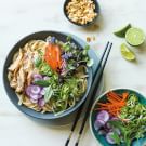 Divide the noodles evenly among individual bowls and top with the chicken and any of the garnishes you choose. Serves 4.