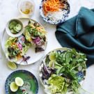 To serve, on a large platter, arrange the pork, bowl of sauce, lettuce, vermicelli, cilantro, mint, basil, green onions, jalapeño, pickled vegetables and lime wedges. Invite everyone to assemble their own lettuce cups. Serves 6.