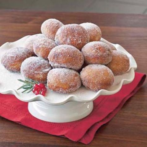 Using the remaining 1/2 cup sugar, sprinkle the warm doughnuts on all sides with a light coating of sugar. Using a pastry bag fitted with a thin piping tip, gently pipe 1 to 1 1/2 tsp. jam into each doughnut. Serve warm. Makes 24 doughnuts.
