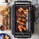 Dinner is only a few minutes away when you use our exclusive collection of time-saving rubs and hibachi grilling sauces and a Philips Smoke-Less Grill, which allows you to grill indoors in any weather. Here we’ve used our Sesame Chile Togarashi rub, which combines spicy chiles, Sichuan peppercorns, nori flakes and sesame seeds, as well as our Miso Sesame Soy Hibachi grilling sauce, but feel free to mix and match our rubs and grilling sauces with your favorite meats, such as beef or chicken, or with vegetables, such as bell peppers, green onions or shishito peppers. If using wooden or bamboo skewers, soak them in water for at least 30 minutes to prevent them from burning on the grill.