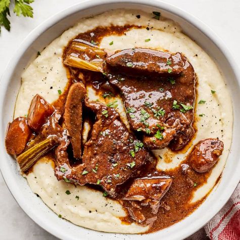 Spoon the grits into bowls and top with the braised short ribs, vegetables and sauce. Garnish with fresh parsley and serve immediately. Serves 4 to 6.