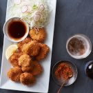 In this recipe from Sylvan Mishima Brackett, chef/owner at San Francisco’s Izakaya Rintaro, kabocha squash and potatoes are flavored with Japanese curry powder before being formed into croquettes and deep-fried for an irresistible appetizer. At the restaurant, they make their own panko from pain de mie, a soft, slightly sweet loaf made by a local bakery, but you can use purchased panko instead. This recipe makes a big batch—about 40 generously sized croquettes—but they will disappear quickly when served at a party. You can divide the recipe in half if you like.