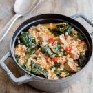 This stew will satisfy your hunger and nutrient needs in the cold winter months. Kale is a powerhouse of nutrition, delivering a bounty of vitamins and minerals. Barley is full of cholesterol-lowering soluble fiber and adds great heartiness to this warming stew. If you want more heat, add a spicy sausage. This is a great dish to bring to a potluck.