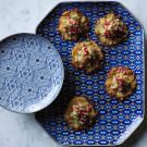 To serve, arrange the latkes on a serving platter. Top each latke with a small spoonful of the apples, dividing them evenly. Garnish with pomegranate seeds and chives, if desired, and serve immediately. Makes about 3 dozen latkes; serves 12.