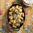 Popular in Campania and elsewhere in southern Italy, paccheri is a large tubular pasta that is equally delicious stuffed or served with a rich sauce. If you can’t find it, substitute another hollow pasta like rigatoni or cannelloni.