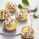 Filled with rich lemon curd and topped with billowy meringue, the tartlets make an impressive presentation, and everyone will enjoy having their own little dessert. To get a head start on the recipe, you can prepare the lemon curd and the dough up to 3 days in advance and store in the refrigerator. If using a kitchen torch to brown the meringue, you can pipe dollops on only part of the tartlets if you wish, but don’t pass the flame over the exposed lemon curd. If using the broiler, you will need to completely cover the curd with meringue; watch closely as the tartlets broil to prevent the meringue from burning.