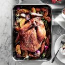 Here, tart lemon, fragrant rosemary and a rich mixture of butter and olive oil flavor this delicious chicken. This classic recipe, which requires very little hands-on time, should be added to your weeknight recipe arsenal. What’s not eaten for dinner makes fabulous leftovers, whether sliced and eaten cold, or shredded or cubed and used in chicken salad or enchiladas. And for a holiday meal or special occasion, we love pairing this chicken with a side of Rosemary Garlic Oven-Roasted Potatoes.
