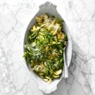 This simple orzo salad shines when made with fresh, high-quality ingredients. Perfect for weeknight meals or last-minute gatherings, this dish is also versatile for any season and can accompany whatever ingredients you have on hand, from jarred olives and tinned anchovies to sautéed asparagus and fresh herbs such as mint or basil.