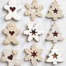 To assemble, spread the solid cookies with a thin layer (about 1 tsp.) of raspberry jam to within about 1/4 inch (6 mm) of the edges. Top the solid cookies with the cutout cookies. Decorate with royal icing if desired. Makes 12 sandwich cookies.