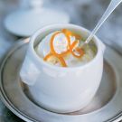 To serve, top each custard with whipped cream and a few strands of the julienned zest.