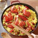 Combining sweet lobster meat with spicy chorizo, this paella is just right when you’re serving a crowd. Be sure to buy cured Spanish chorizo, rather than fresh Mexican chorizo, for this dish.