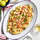 This indulgent pasta captures the essence of summer—succulent lobster meat paired with fresh sweet corn, all bathed in a silky butter and cream sauce that clings beautifully to the noodles. Don’t toss the lobster body shells and corncobs because they’re used to prepare a stock that deepens the flavor of the finished dish. Offer lemon wedges on the side; a spritz of fresh juice adds bright acidity and balances the richness. When boiling the pasta, be sure to remove it from the water while still slightly undercooked (it should be not quite al dente), as it will continue to cook when transferred to the simmering sauce.