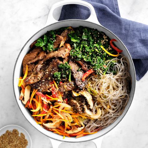 • Stir-Fried Soba Noodles with Beef and Cabbage