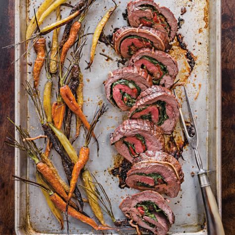 • Stuffed Flank Steak with Brown-Sugared Carrots