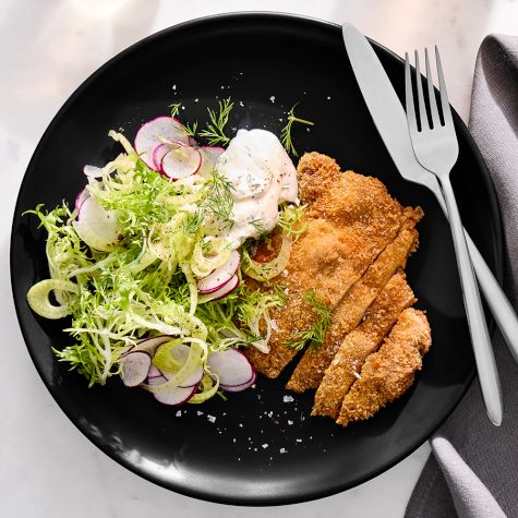 • Air Fried Schnitzel with Fennel Salad and Dill Sour Cream