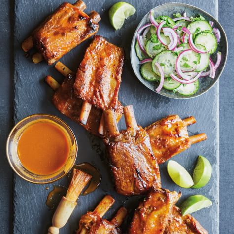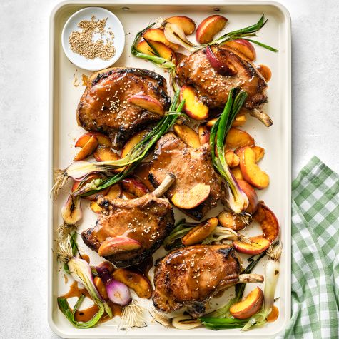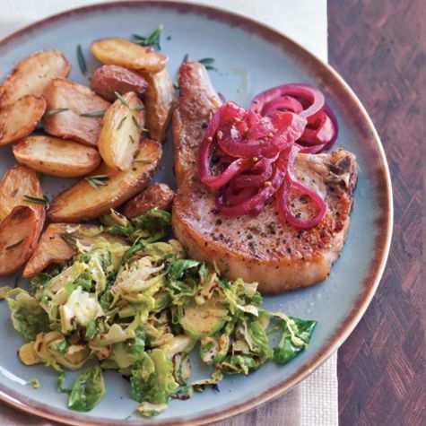 • Sweet & Spicy Gochujang Pork Chops with Apple, Kohlrabi & Asian Pear Slaw
