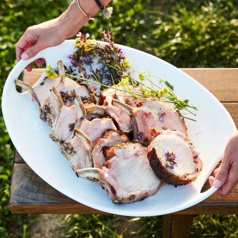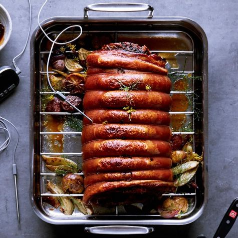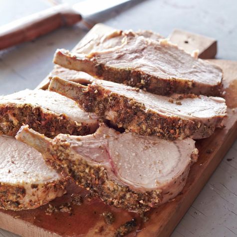 • Stuffed Pork Chops with Roasted Root Vegetables