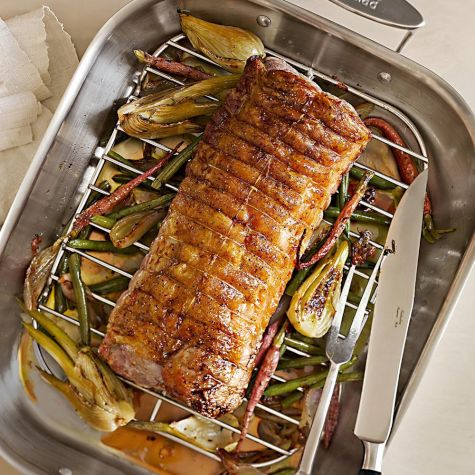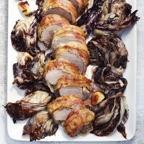 • Tangy Braised Pork Loin with Pear and Prosciutto Salad