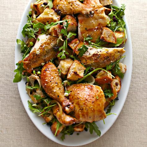 • Roasted Garlic & Herb Chicken with Grilled Vegetable & Bread Salad
