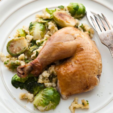 • Roasted Chicken with Spaetzle, Brussels Sprouts and Smoked Apple Puree